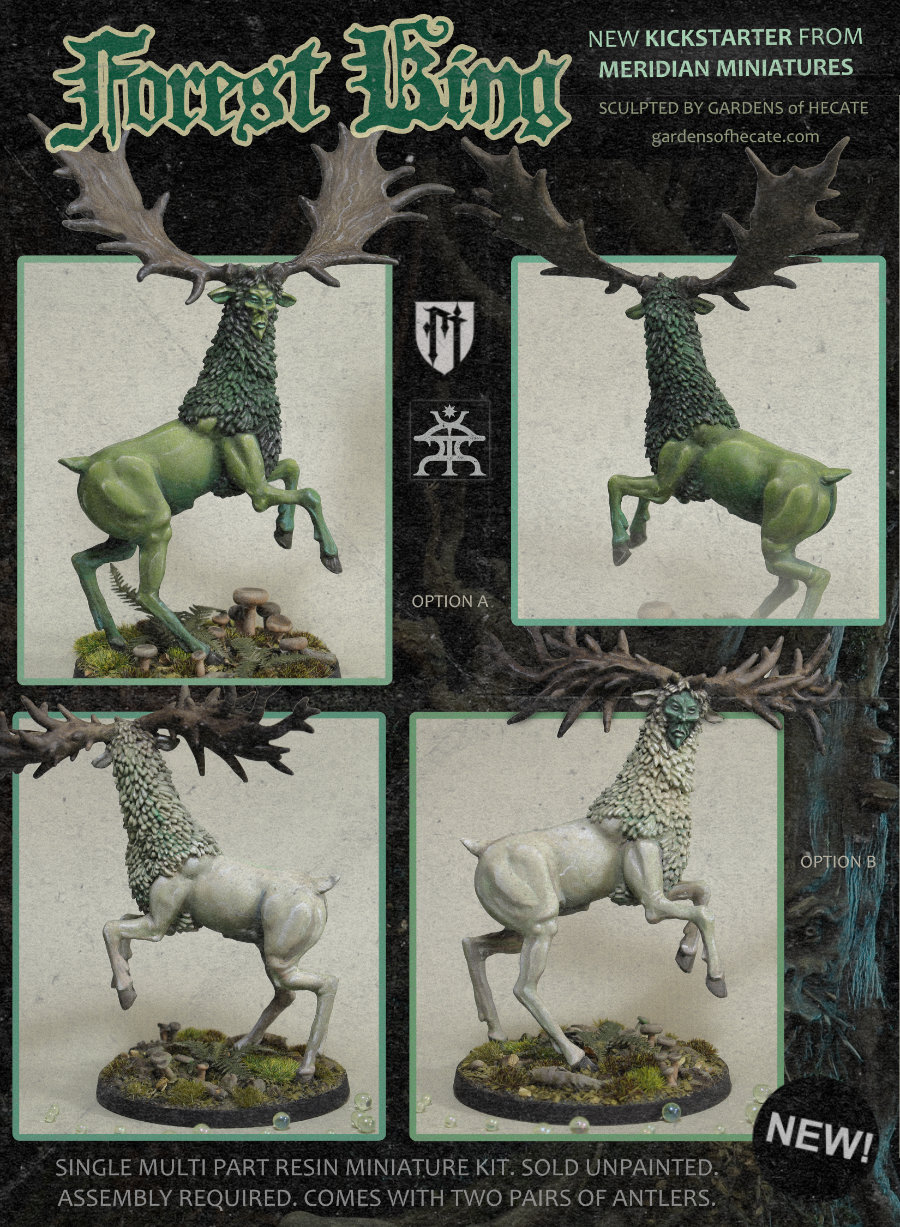 The campaign for the Forest King miniature kit launched this morning! It is another collaboration with Andrew May of Meridian Miniatures, who is running the Kickstarter for me. We’re releasing a new multi-part resin figure.