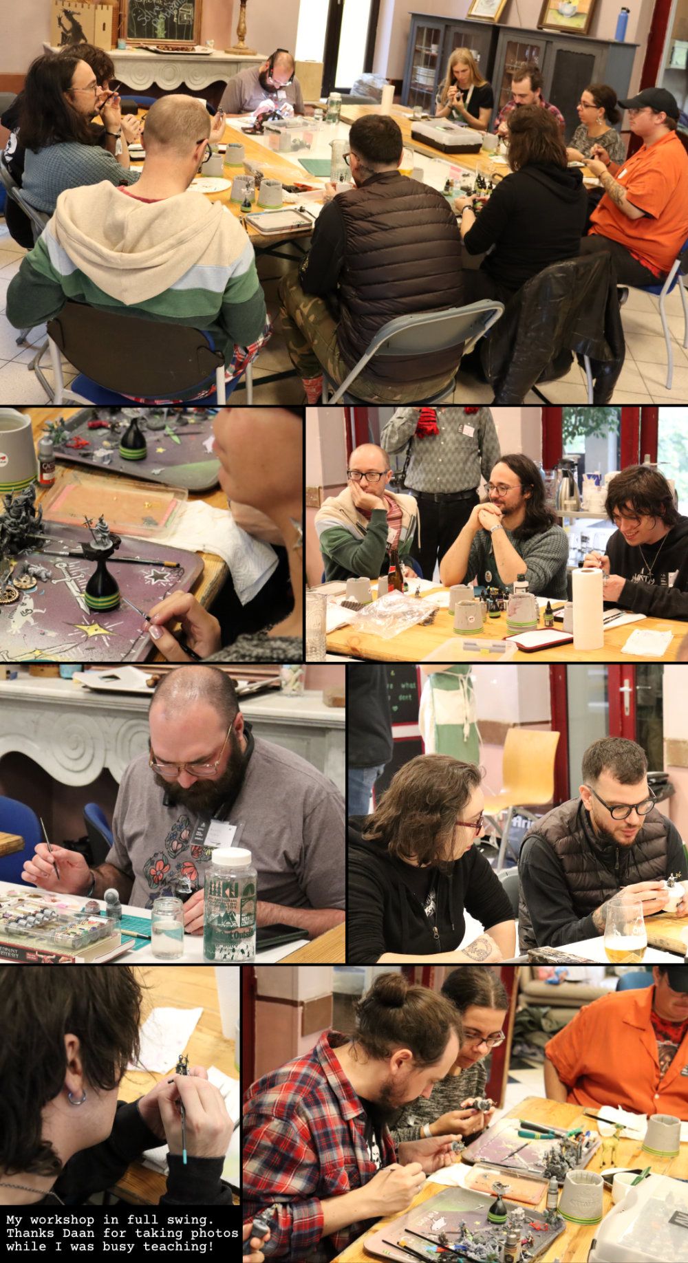 Kamping Kitbash is not like most events I’ve gone to and hosted, which are commonly focused on gaming. It’s mainly centred on crafting (though there was some gaming going on, which I’ll talk about later). The organisers brought in a few paid key figures to hold structured workshops over the course of the weekend, and the rest of the attendees registered by buying a ticket. Kamping Kitbash has a limited capacity, so they sold out within minutes of going live. Of course, there was a team of volunteers taking care of all of us - even cooking us three meals a day. We had access to coffee, soft drinks, and an endless stream of Belgian beers. Many people stayed overnight on site, as the manor is equipped with bedrooms and bathrooms. However, I wasn’t staying there as the Goblins put me up in a comfy hostel in town with a handful of room-mates, and they ferried us to and from the venue by car every day.
