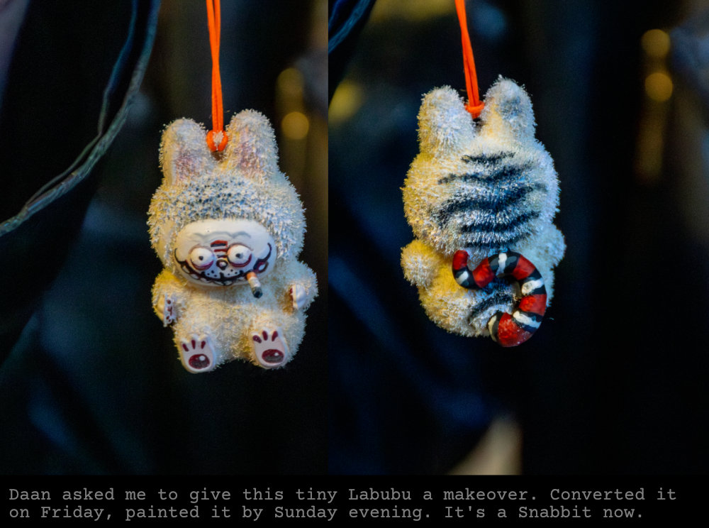 After a brief sleep, fun resumed on Saturday with more workshops and free making. I got a request to convert a Labubu into something more or less cursed, so I worked on that here and there. But mostly I spent my time hanging out with creative people and chatting.